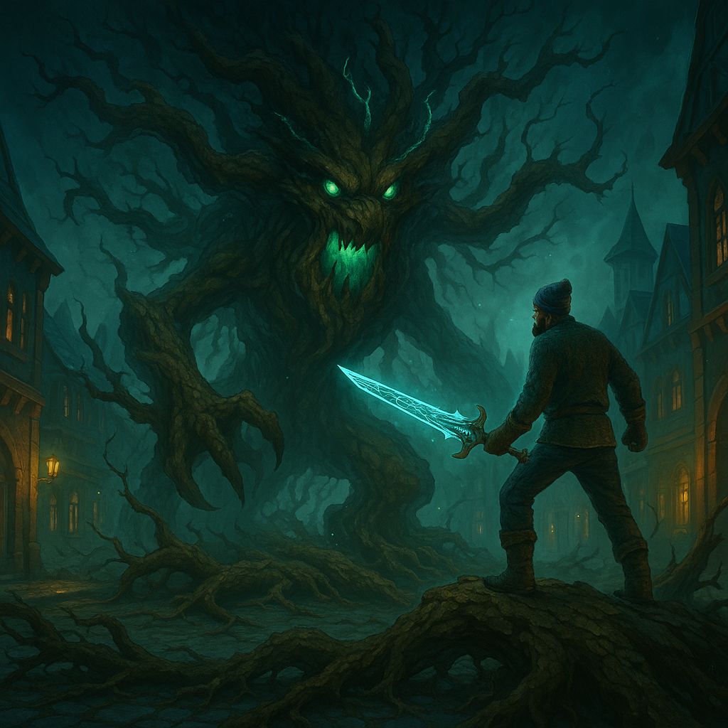On a quiet autumn morning, the small town of Everdale woke to an unusual sight. A grand oak, centuries old, about seven stories high, had split in the night during a Blizzard.